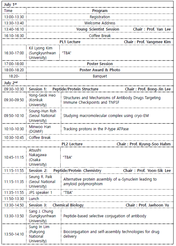 [제23회 한국 펩타이드단백질학회 국제심포지움 Program]